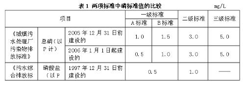 《污水综合排放标准》中磷酸盐排放标准如下表所示: