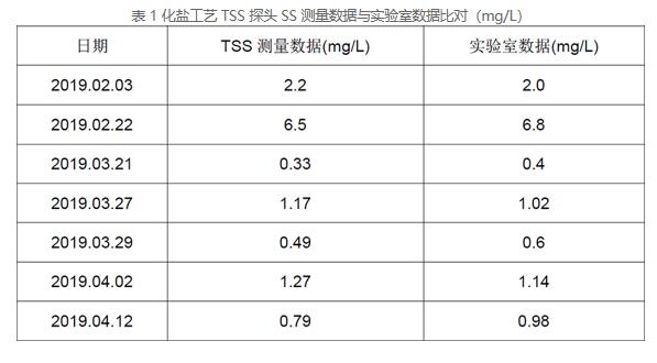 从表 1 来看,7 组 TSS 探头的测量数据与实验室数据的相对误差均在 20%以内,能够满足客户工艺控制的要求。