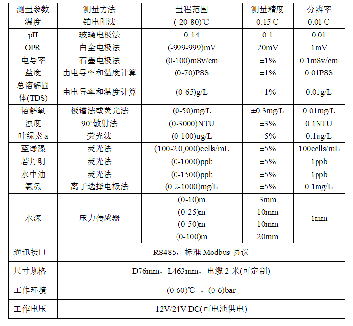 点创DCT-MWQ-5100/5101电极式多参数水质监测仪,可自由组合安装2-12个水质传感器,监测因子包括:温度、pH、ORP、电导率、盐度、总溶解固体、溶解氧、浊度、叶绿素a、蓝绿藻、若丹明、水中油、氨氮、深度等。采用RS485接口和标准Modbus协议,功耗低,可内置电池,支持太阳能供电。DCT-MWQ-5101较5100使用更优性能电极,寿命更长,可工作在多种恶劣环境下。